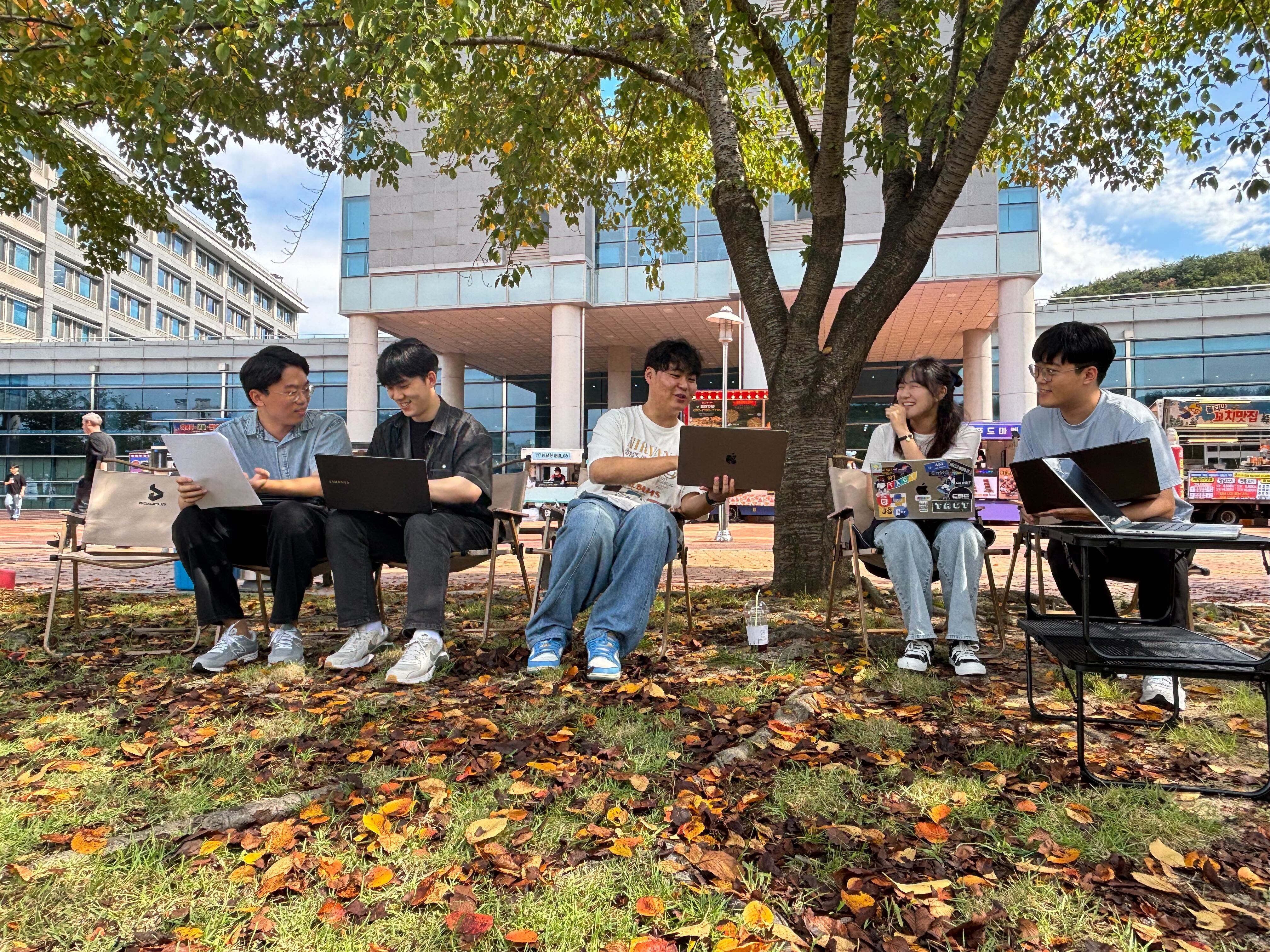 날씨도 좋고 학교에 캠핑체어도 있고 푸드트럭도 왔길래 미니 가을소풍 (택트닉) 겸, 야외 과제연구 미팅을 했습니다. 팀별로 부르면 와서 미팅하려고 제 옆에 한줄로 앉아 기다리고 있는 학생들이 귀여워서 찍어봤는데 모두들 풋풋하니 대학내일 표지사진처럼 나온 거 같아요 (?)